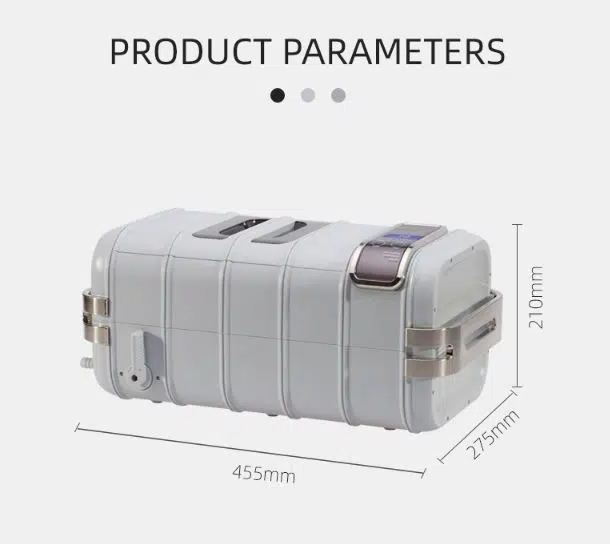 – Depósito de limpeza em aço inoxidável SUS304 de 3,0L, com capacidade máxima de 266 mm.