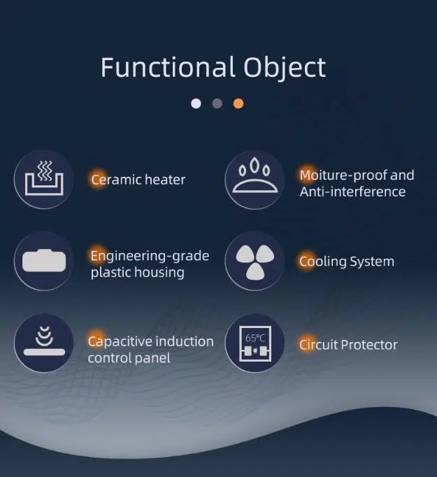 – Função de aquecimento, aquecedor cerâmico (100W). Definições de temperatura: 50-55-60°C.